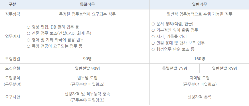 모집부문 : 특화직무, 일반직무 중 선택하여 신청(중복신청 불가)