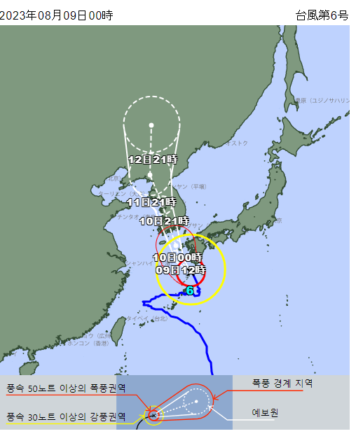 기상청은 카눈이 10일 오전 3시 서귀포 동쪽 170km 해상을 지난 뒤 같은 날 오전 통영 남서쪽 30km 해상에 이른 뒤 강도가 ‘강’인 상태로 상륙할 것으로 예상했습니다.